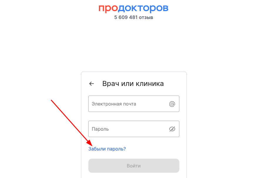 Если вы не можете восстановить пароль, потому что у клиники больше нет доступа к почте, к которой был привязан кабинет, восстановление проводится через службу поддержки портала.
