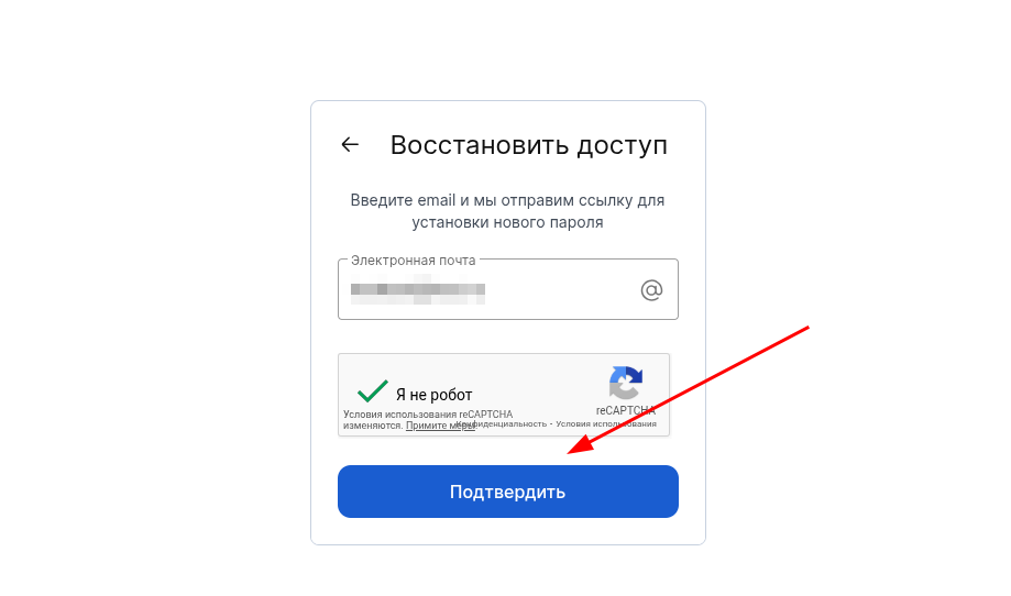 3. Укажите адрес электронной почты, к которому привязан кабинет, и нажмите кнопку «Подтвердить».