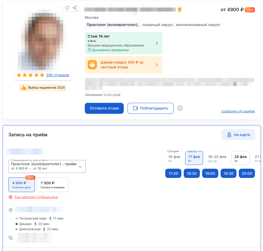 Портал ПроДокторов предлагает клиникам повысить доходимость пациентов на приём и свой доход за счёт вступления в Клуб. Пациенты получают возможность записываться на приём к врачу по Клубной цене — со скидкой от 30%, а клиника вернуть 40% от стоимости приёма в случае, если пациент не пришёл.