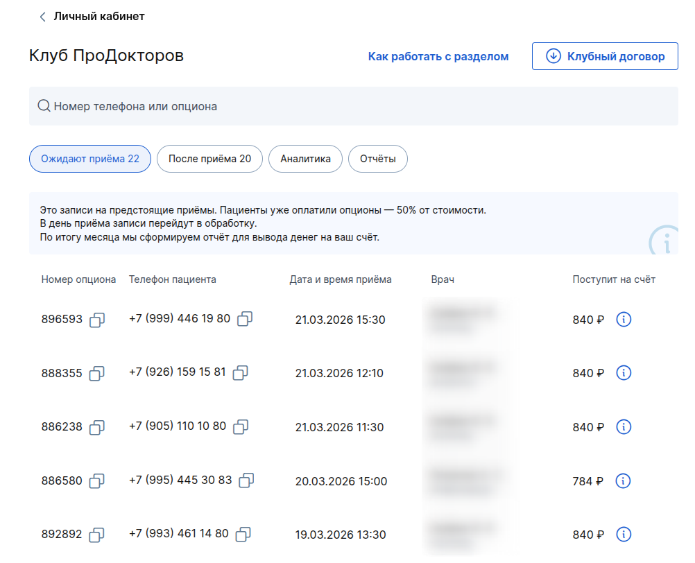 Важно! Подключить Клуб может только клиника с активной онлайн-записью на приём. Подробнее о подключении в инструкции Онлайн-запись к врачу.