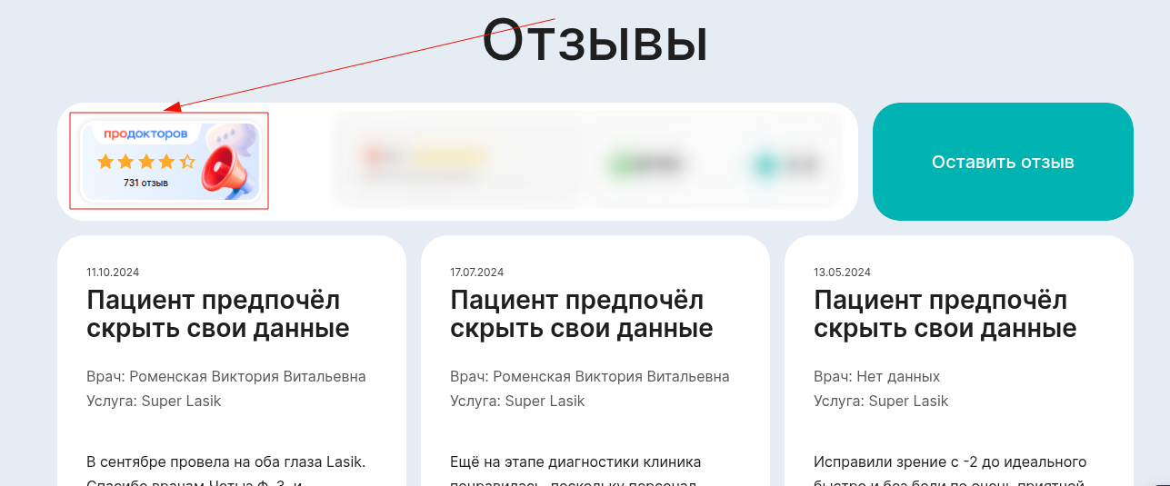 Для всех клиник портала доступна возможность разместить на своём сайте виджет ПроДокторов с помощью личного кабинета клиники. Виджеты позволяют повысить доверие пациентов, демонстрируя рейтинг и отзывы, собранные на портале. Они обеспечивают быстрый доступ к информации, показывают честную репутацию и помогают пользователям принять решение о записи, не покидая сайт клиники.