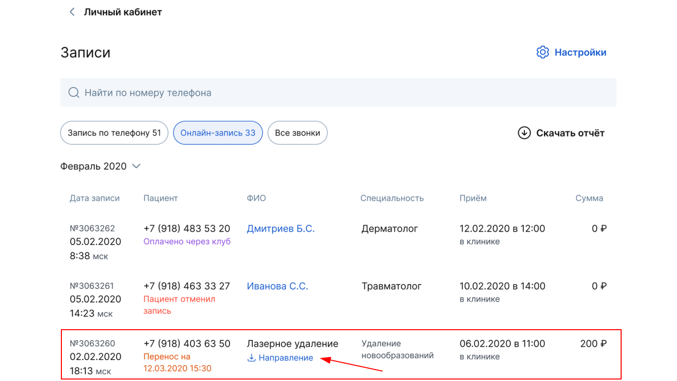 Как выглядит запись на услугу, требующую направление от врача, со стороны пациента вы можете ознакомиться в этой статье.