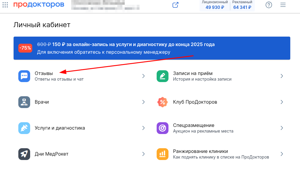1. Войдите в личный кабинет и перейдите в раздел «Отзывы».